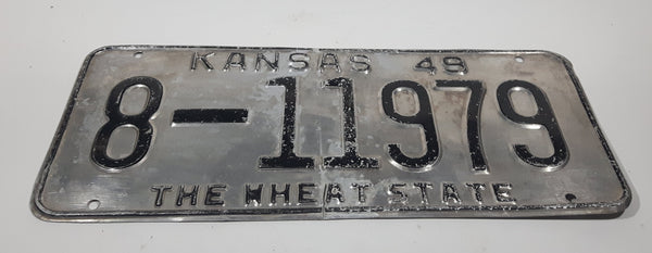 1949 Kansas The Wheat State Silver with Black Letters Metal Vehicle License Plate Tag 8 11979