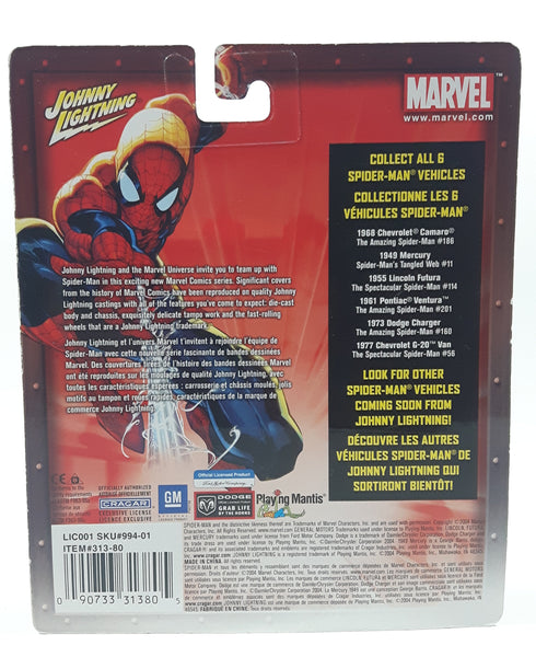 2004 Johnny Lightning Marvel The Amazing Spider-Man 1968 Chevrolet Camaro Blue Die Cast Toy Car Vehicle and Trading Card New in Package