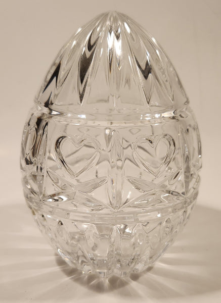 Vintage Bohemia Czech Republic 5 1/2" Heart Themed Cut 24% Leaded Crystal Glass Egg