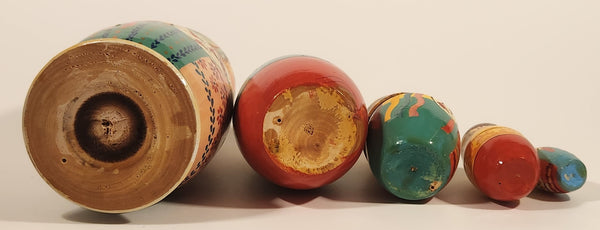 Vintage U.S.S.R Soviet Union Russian Hand Painted Women and Men Wooden Nesting Dolls Set of 5