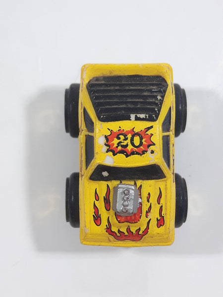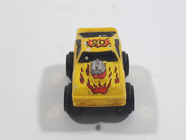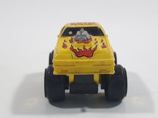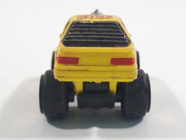 1987 Road Champs 1980s Ford Mustang Yellow Micro Mini Die Cast Toy Car Vehicle