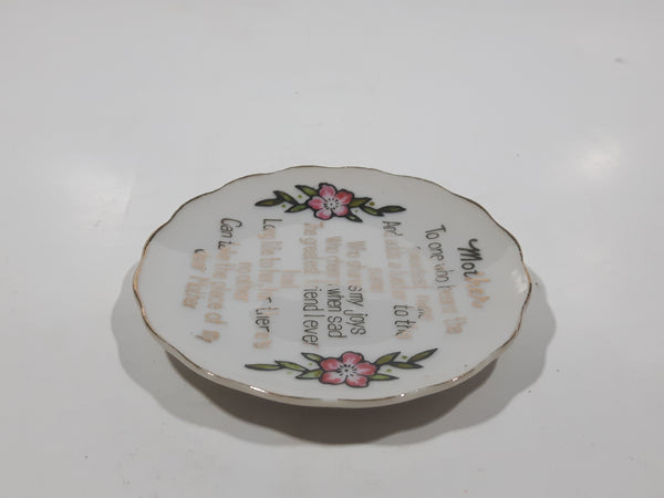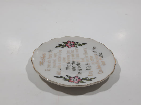 Vintage Giftcraft Mother Poem Flower Themed 3 1/4" Gold Trimmed Hand Painted Fine China Plate GE-343 / MF