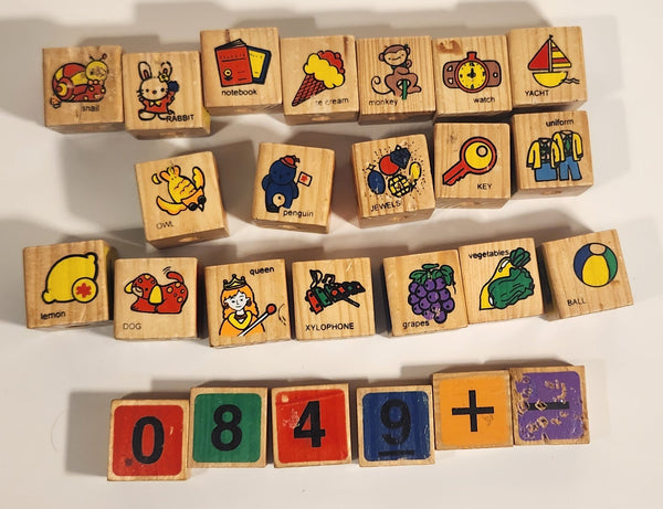 Wood Letter Number Pictures Blocks Toys Lot of 25