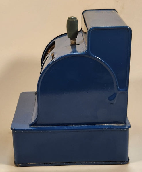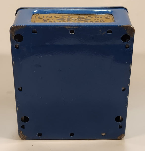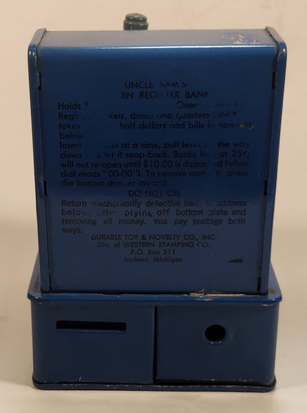 Vintage Durable Toy & Novelty Co Uncle Sam 3 Coin Register Bank Nickels Dimes Quarters Blue Metal Mechanical Coin Bank
