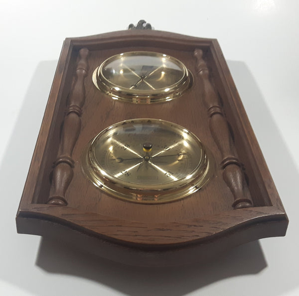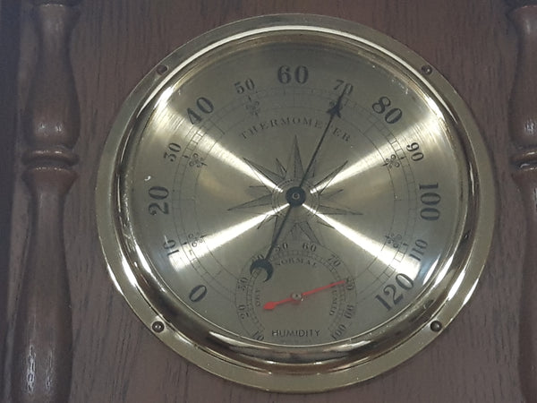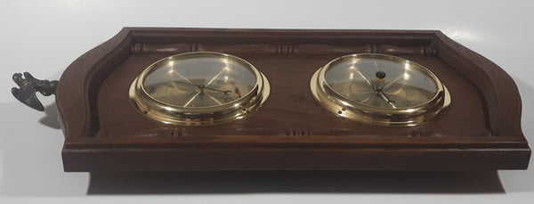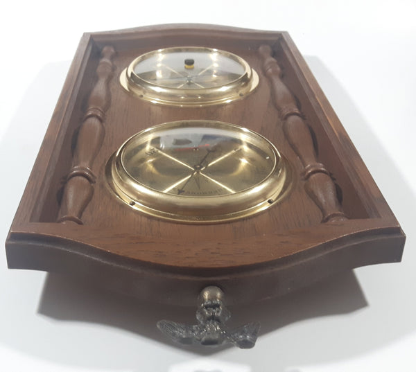 Vintage Springfield Thermometer Barometer Weather Station 9" x 19 1/2" Plastic Faux Wood with Metal Eagle Topper Made in U.S.A.