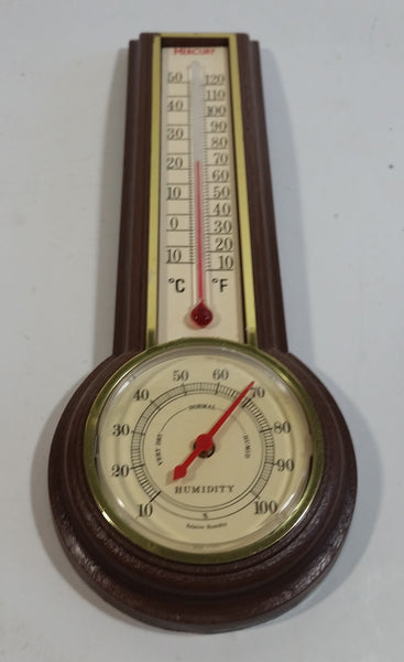 Vintage Wood Texture Plastic Case Thermometer Hygrometer Weather Station Made in U.S.A.