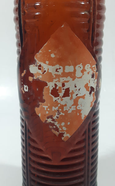 Antique 1940s Orange Crush 7 Fl oz 8 1/4" Tall Brown Amber Glass Beehive Style Bottle