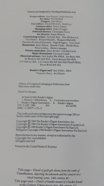 Reader's Digest Quest For The Past 'Amazing Answers to the Riddles of History' Hard Cover Book