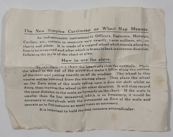 Antique Simplex Curvimeter or Wheel Map Measure with Instructions
