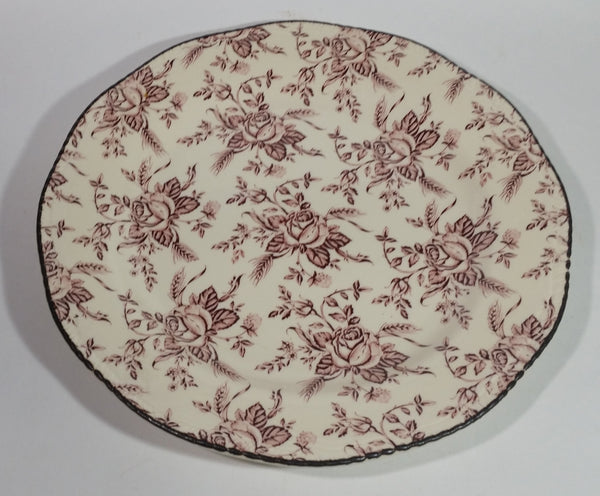 Wood & Sons Cream and Dark Red Colonial Rose Pattern Fine China 10 3/4" Plate