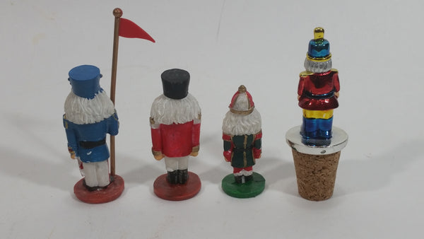 Three Small Christmas Nutcracker Figures and One Bottle Cork Nutcracker