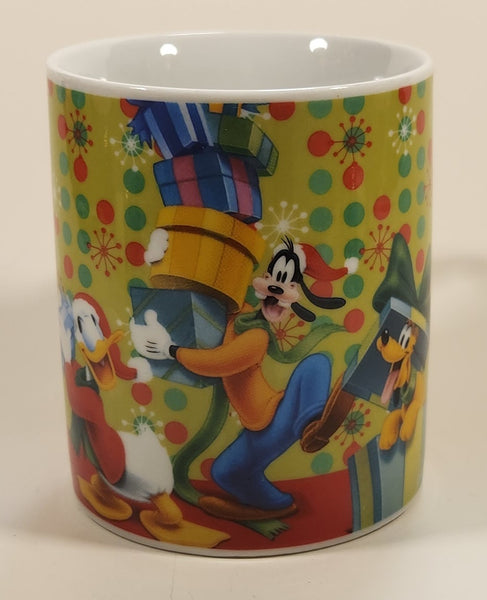 Disney Mickey Mouse Pluto Goofy Donald Duck Christmas Themed 3 3/4" Tall Ceramic Coffee Mug Cup