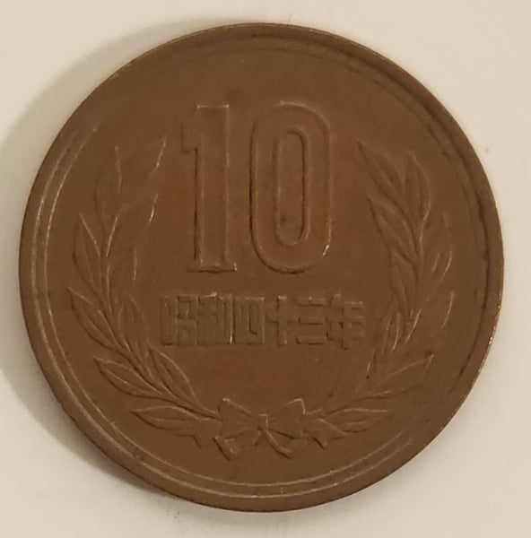1968 Japan 10 Yen Bronze Metal Coin Showa Year 43