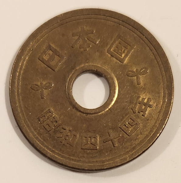 1969 Japan 5 Yen Brass Metal Coin Showa Year 44