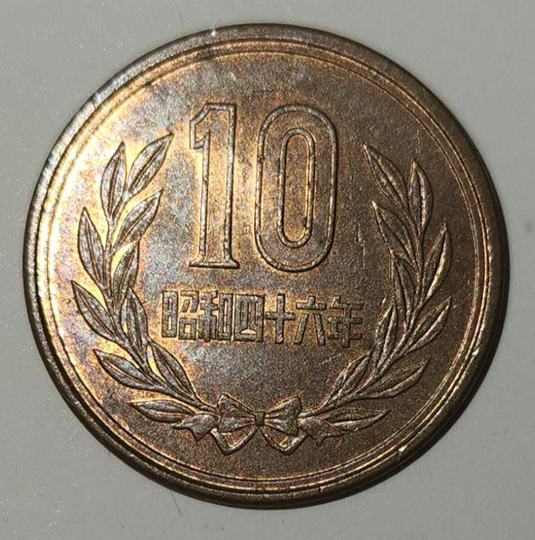 1971 Japan 10 Yen Bronze Metal Coin Showa Year 46