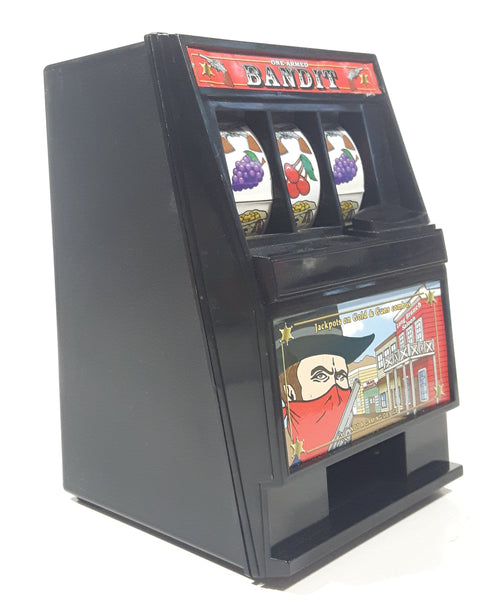 RecZone One Armed Bandit "Jackpots on Gold & Guns Combos" 6" Tall Plastic Mechanical Slot Machine Coin Bank
