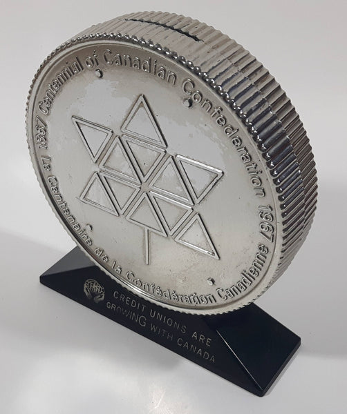 Vintage Astro 1867 - 1967 Centennial of Canadian Confederation Credit Unions Are Growing With Canada 5 5/8" Tall Coin Bank No Key