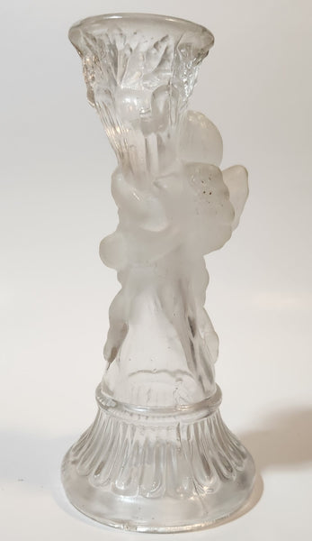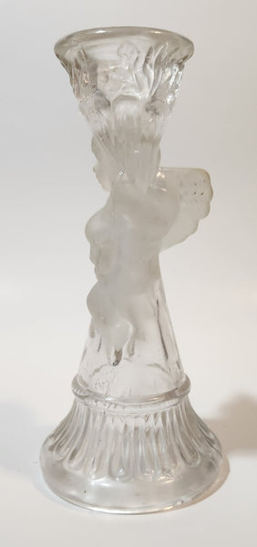 Cherub Themed Frosted and Clear Glass 6 1/2" Tall Candle Holder