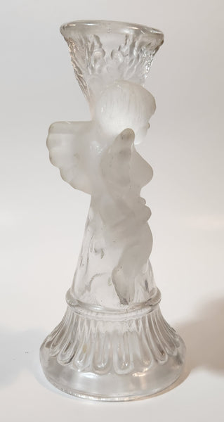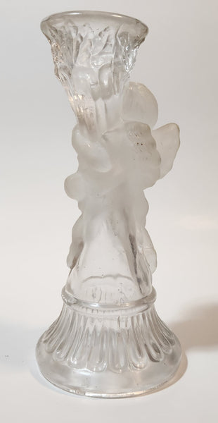 Cherub Themed Frosted and Clear Glass 6 1/2" Tall Candle Holder