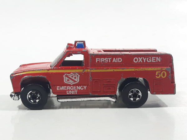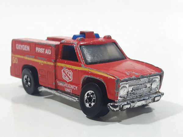1978 Hot Wheels Emergency Squad Rescue Ranger Red Fire Truck Die Cast Toy Car Vehicle - BW - Blue Lights - Hong Kong