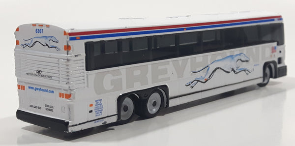 1990s Greyhound Bus 6307 White Die Cast Toy Car Vehicle with Rubber Tires