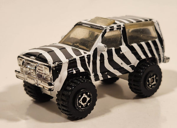 1996 Matchbox Off Road Ford Bronco II Zebra Black and White Striped Die Cast Toy Car Vehicle