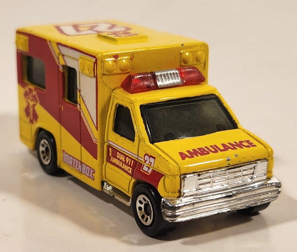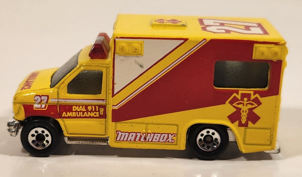 1998 Matchbox To The Rescue 1996 Ford Ambulance Yellow Die Cast Toy Car Vehicle