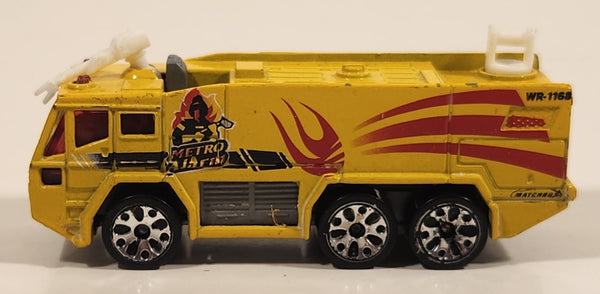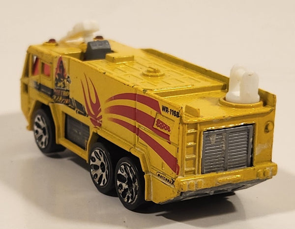 2001 Matchbox Fire Drenchers Airport Fire Tanker Truck Yellow Die Cast Toy Car Emergency Vehicle