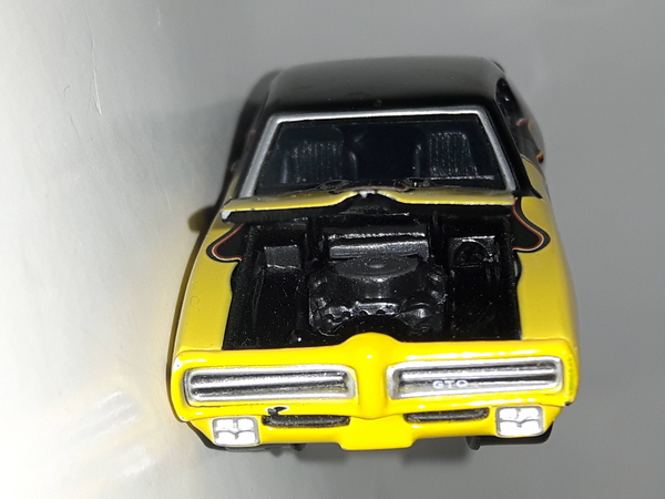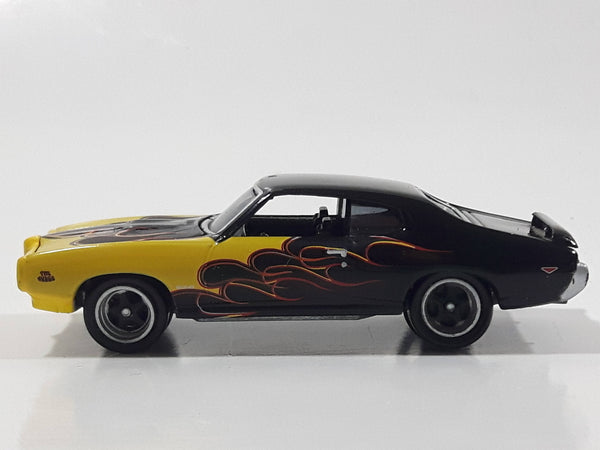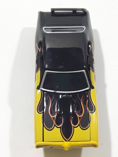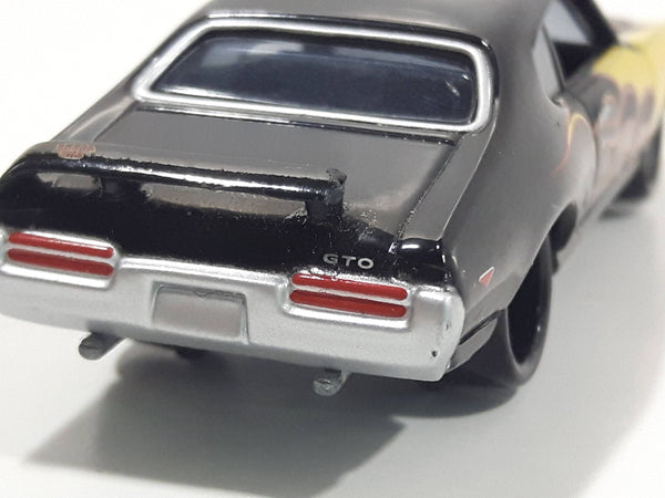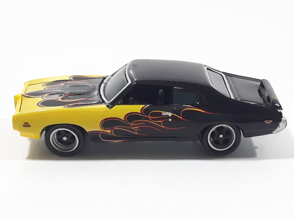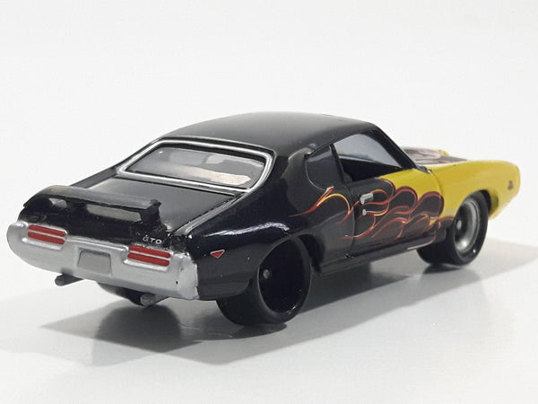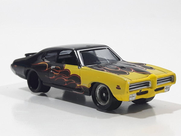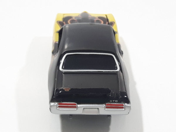 2003 Johnny Lightning 1969 Pontiac GTO Yellow and Black Die Cast Toy Car Vehicle with Opening Hood - Busted Spoiler