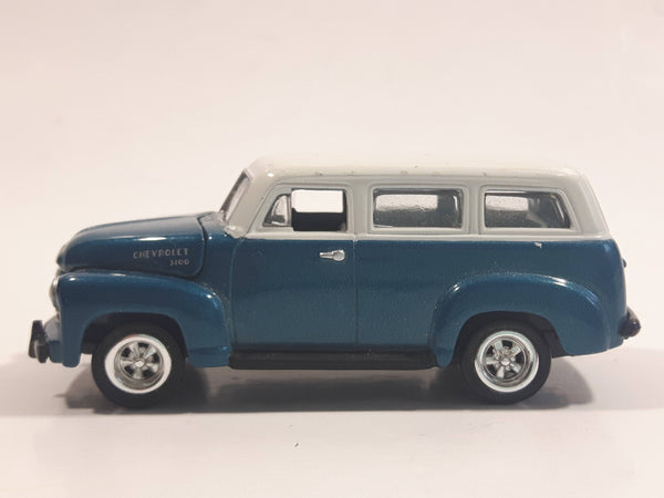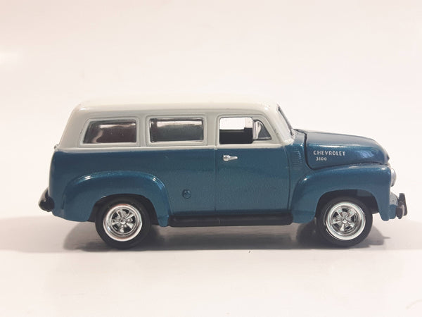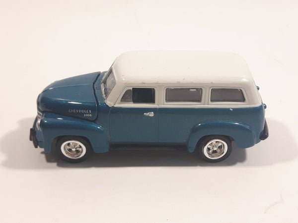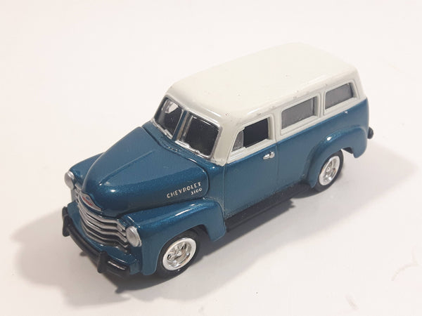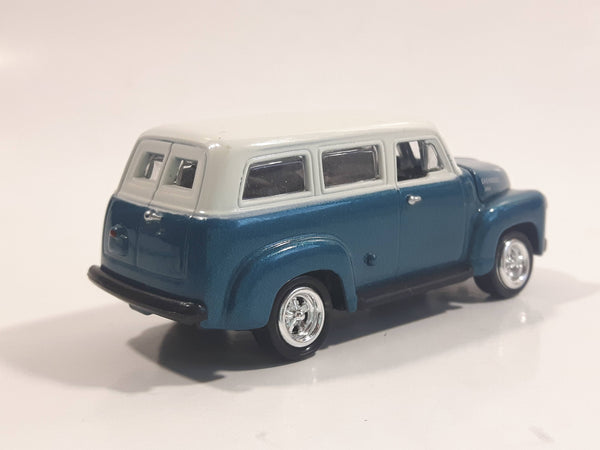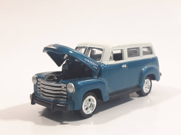 Johnny Lightning 1950 Chevy Suburban Dark Teal Blue Green with White Roof Die Cast Toy Car Vehicle with Opening Hood