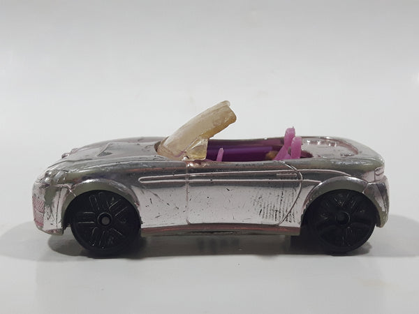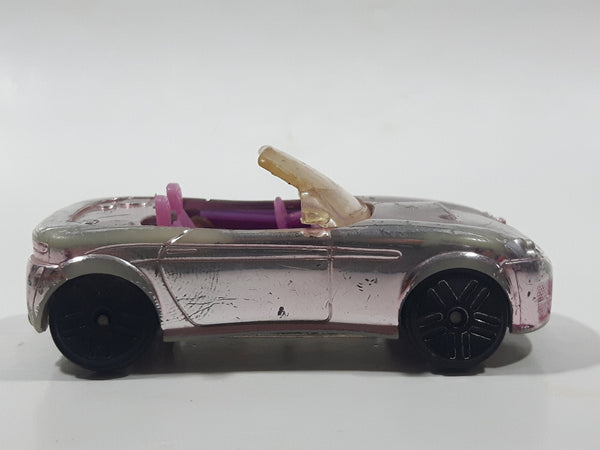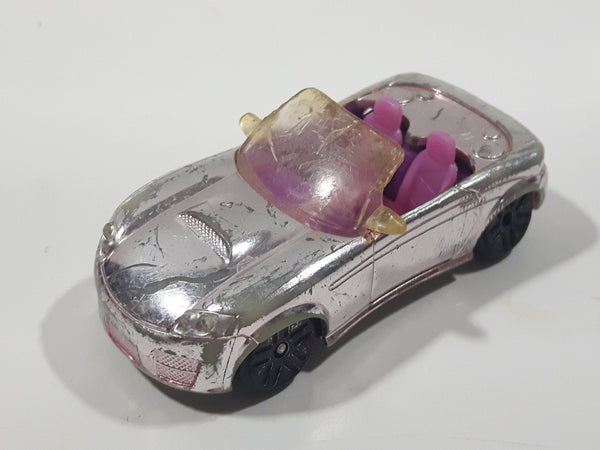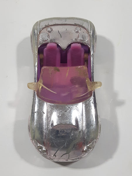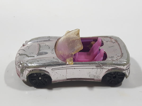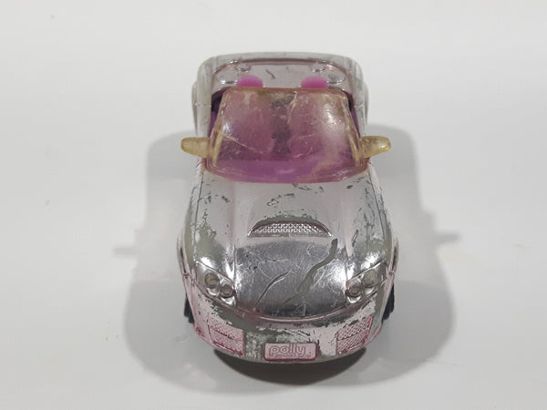 Mattel Polly Pocket Convertible Chrome and Pink Plastic Body Die Cast Toy Car Vehicle L4357 Cracked Windshield