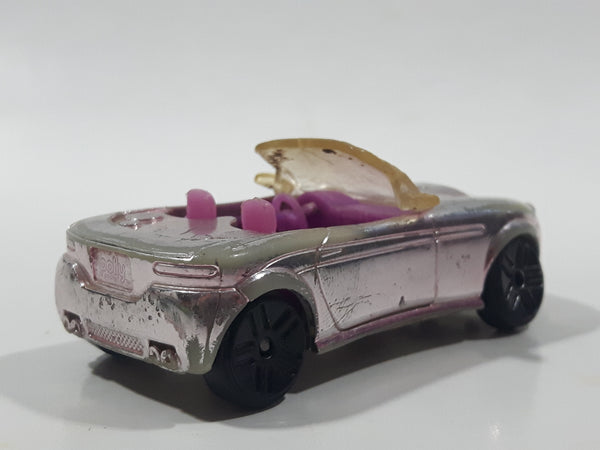 Mattel Polly Pocket Convertible Chrome and Pink Plastic Body Die Cast Toy Car Vehicle L4357 Cracked Windshield