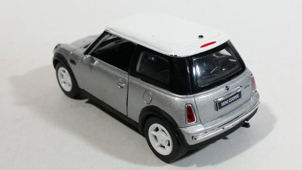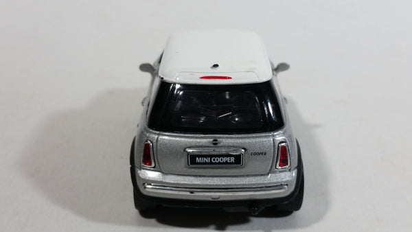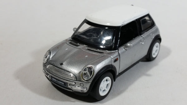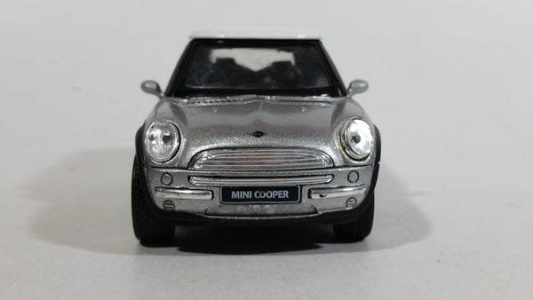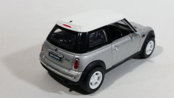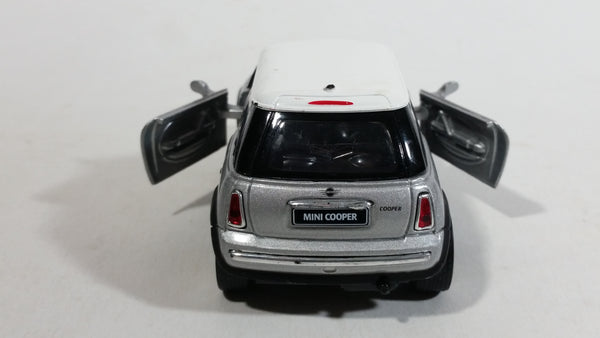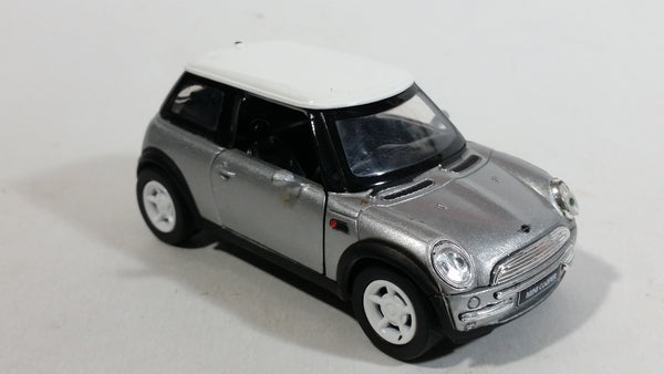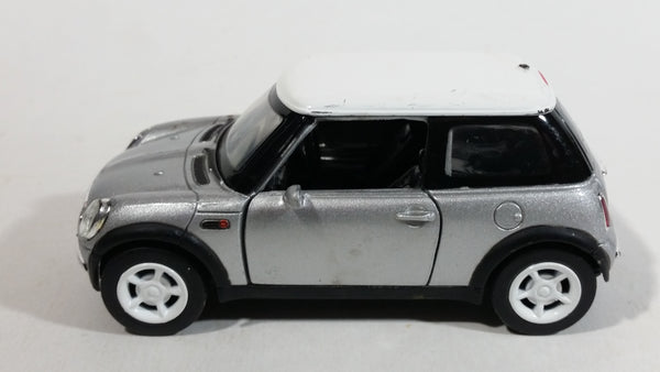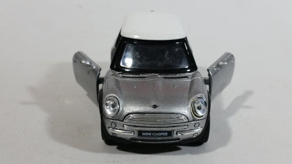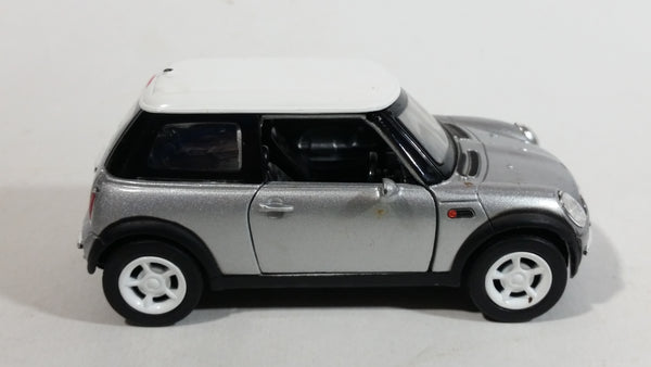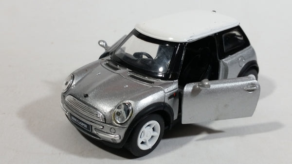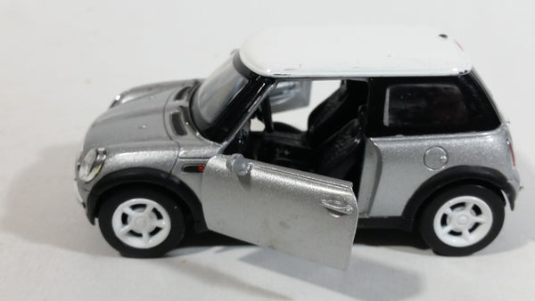 New Ray Mini Cooper Grey Silver Die Cast 1/43 Scale Pull Back Friction Motorized Toy Car Vehicle with Opening Doors - Damage to Drivers Side Headlight