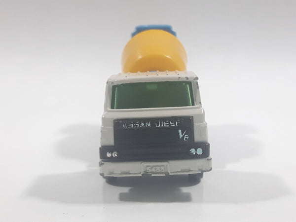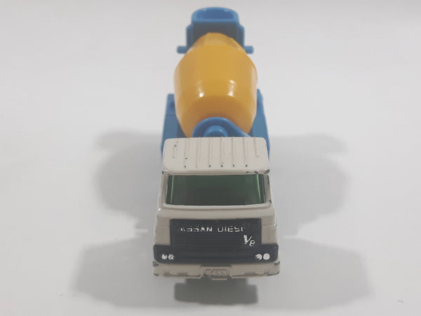 Tomy Tomica No. 53 Nissan Diesel Truck Cement Mixer Truck White Blue Yellow 1/100 Scale Die Cast Toy Car Vehicle