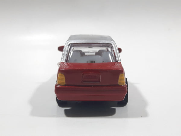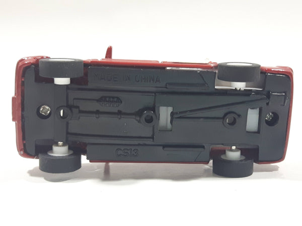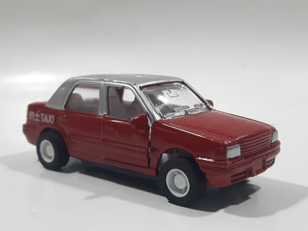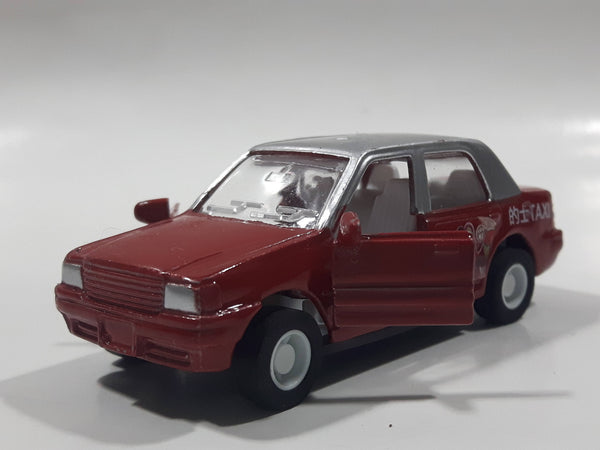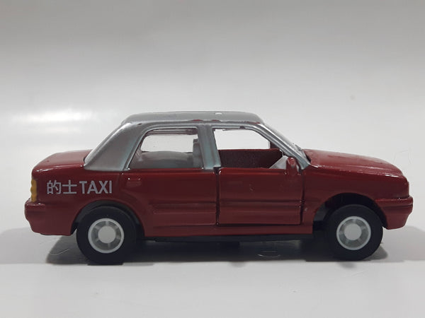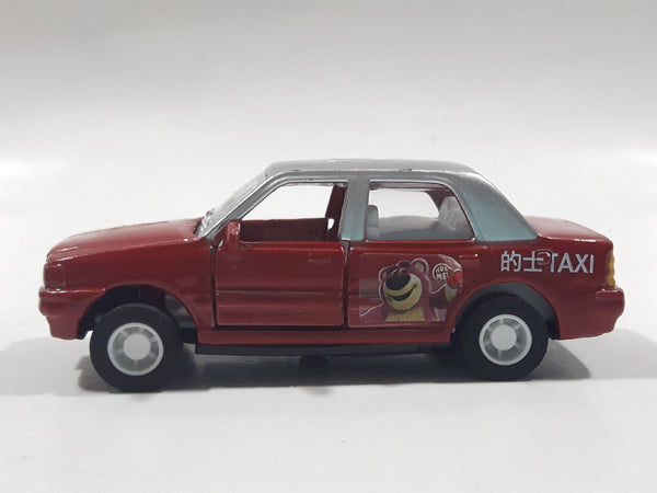 Unknown Brand CS13 Taxi Cab with "Hug Me" Bear on the Side Red and Silver Pullback Friction Motorized Die Cast Toy Car Vehicle with Opening Doors - Missing Roof Light