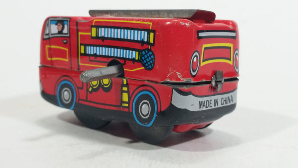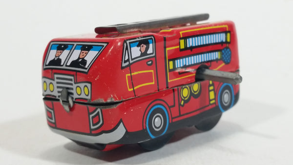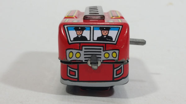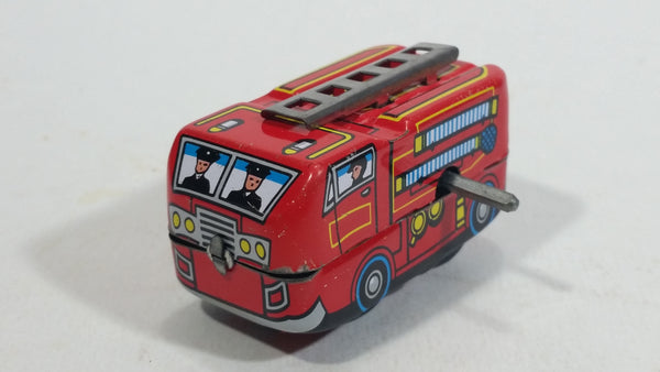 Fire Truck Ladder Truck Red Firefighting Wind Up Tin Toy Vehicle MS261 - No Key - Tested and Working