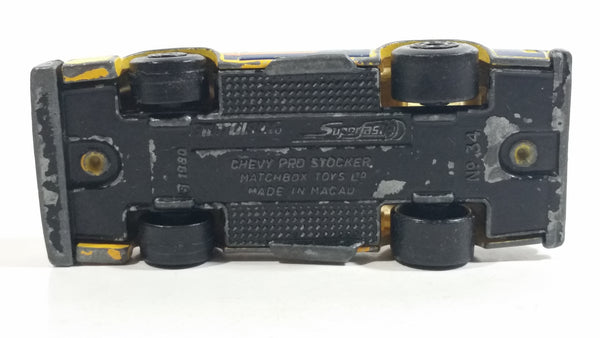 Vintage 1980 Lesney Products Matchbox Superfast Chevy Pro Stocker #4 Mustard Yellow No. 34 Die Cast Toy Race Car Vehicle