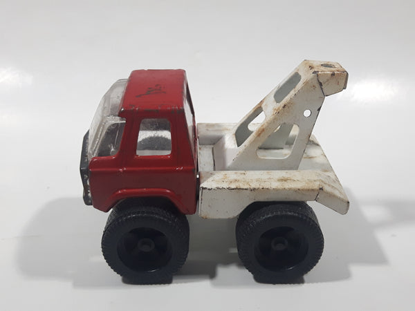 Vintage Tow Truck Red and White Pressed Steel Die Cast Toy Car Vehicle