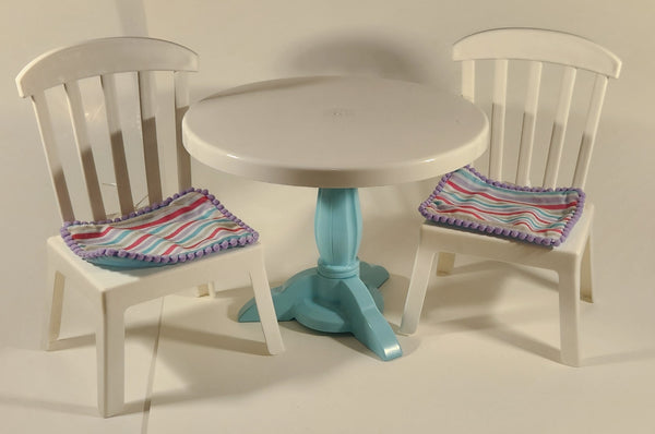 My Life As Dining Play Set Table Chairs Cups Placemats Cakestand 9 1/2" Diameter Plastic Dollhouse Toy