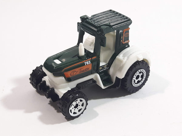2010 Matchbox Farm Rigs Tractor Forest Green and White Die Cast Toy Car Farm Machinery Vehicle