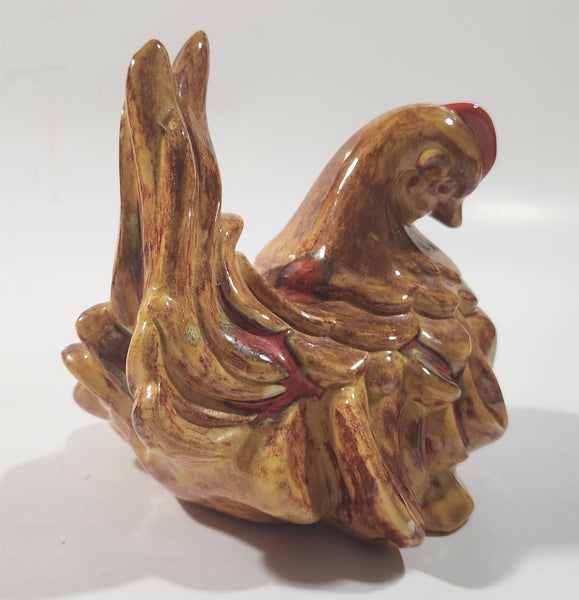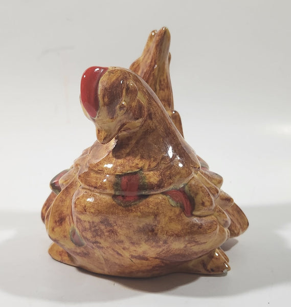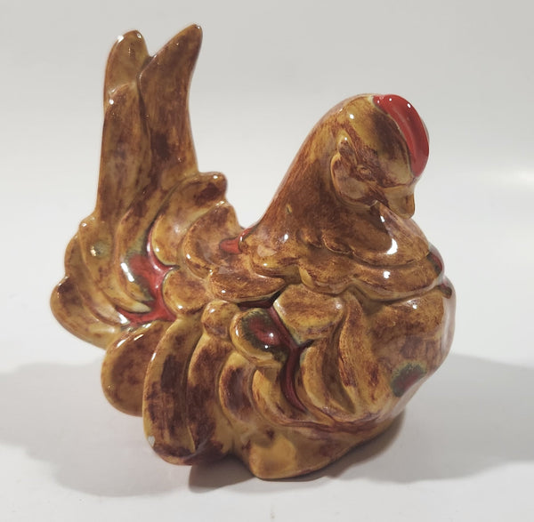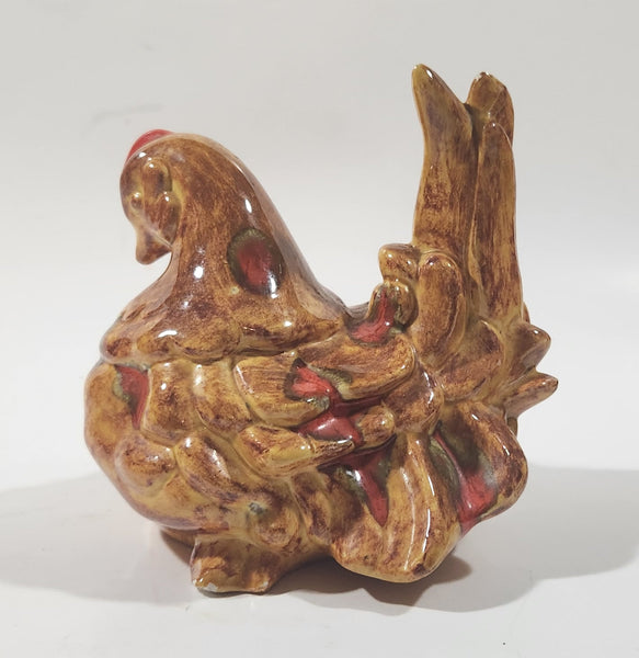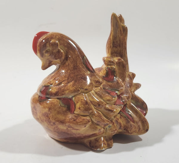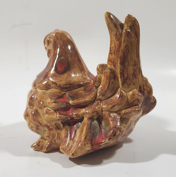 Laying Chicken Hen 5" Brown Drip Glaze Ceramic Ornament