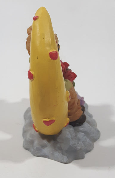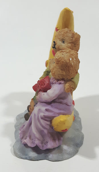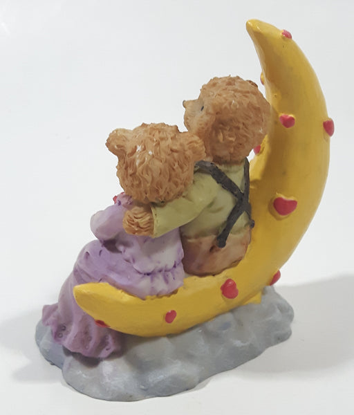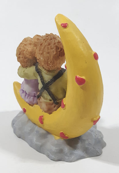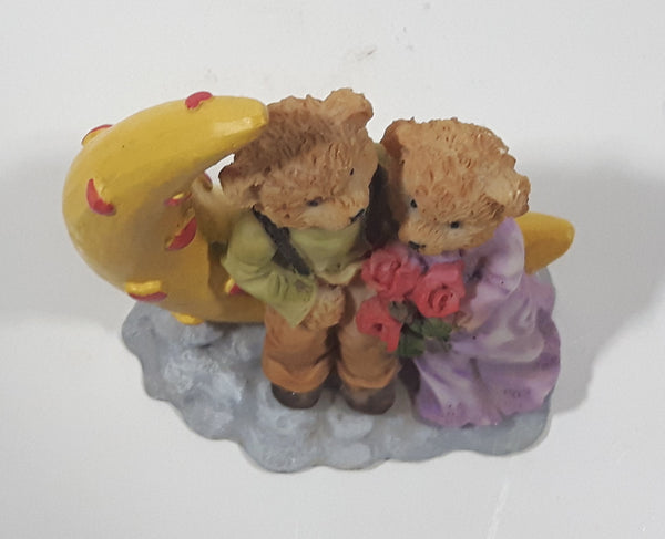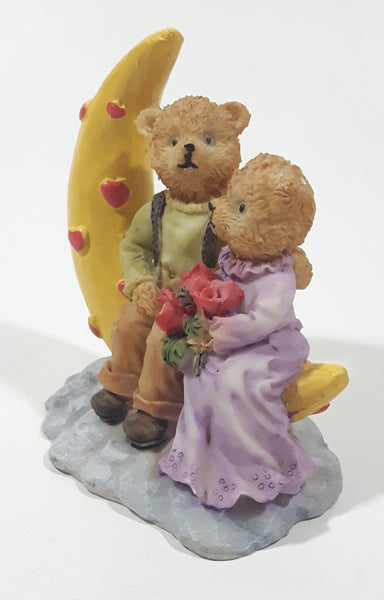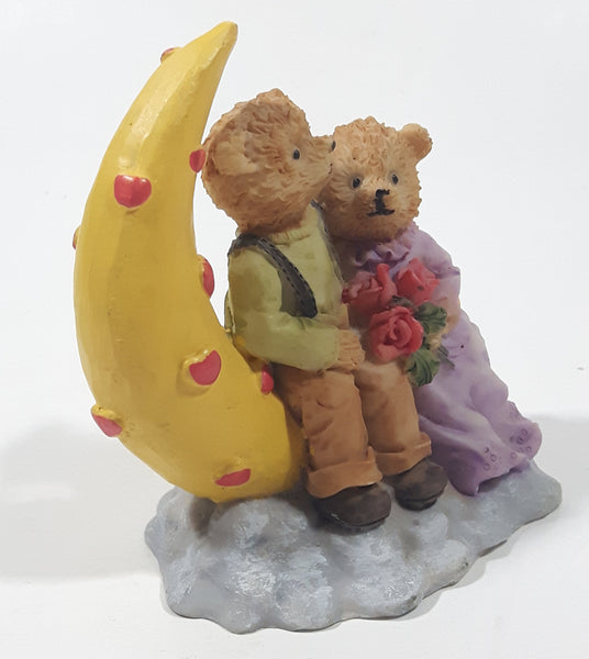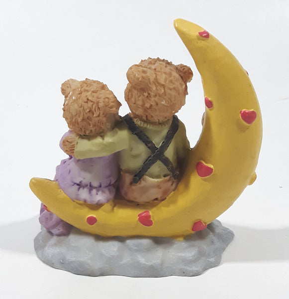 1990s Teddy Bear Couple Sitting On Crescent Moon 3 3/8" Tall Resin Figurine
