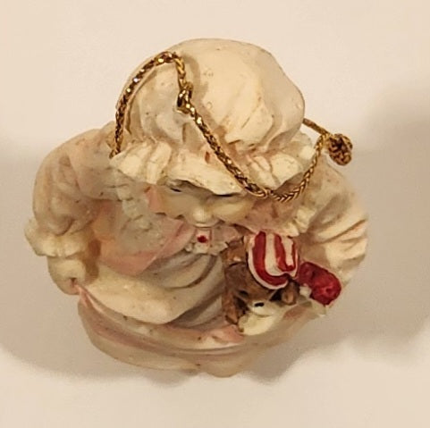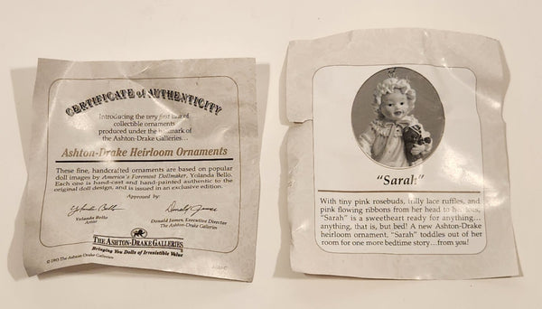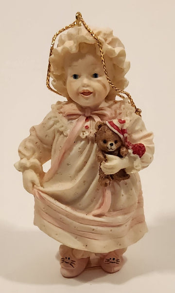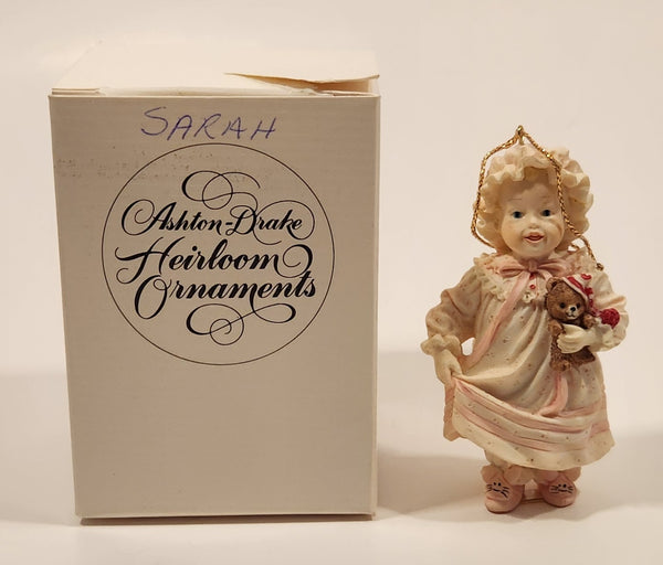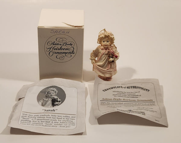 1993 Ashton Drake Heirloom Ornaments Sarah with Brown Teddy Bear Porcelain Figurine by Yolanda Bello