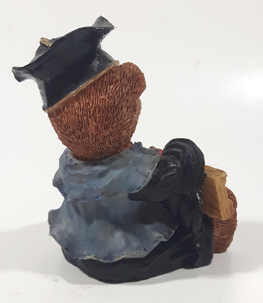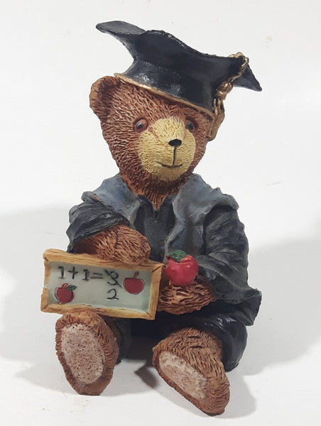 Bear Sitting Doing Math Problems Wearing Graduation Cap 5" Tall Resin Figurine