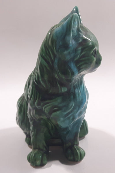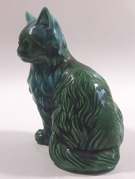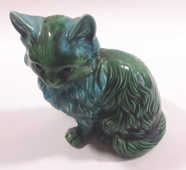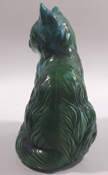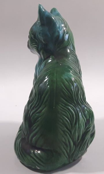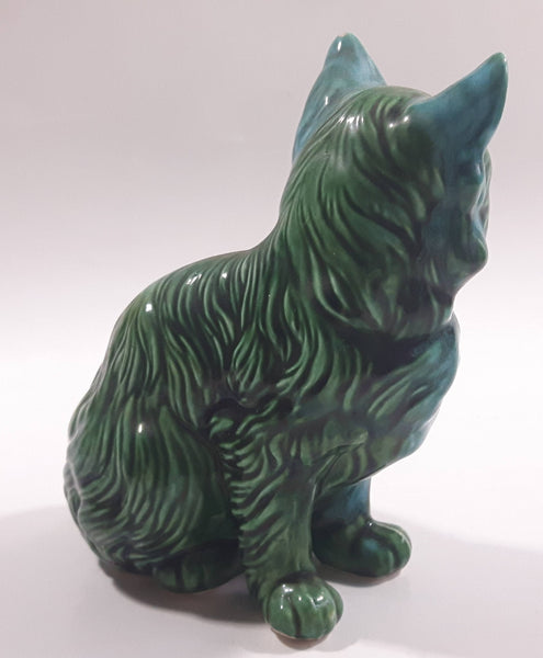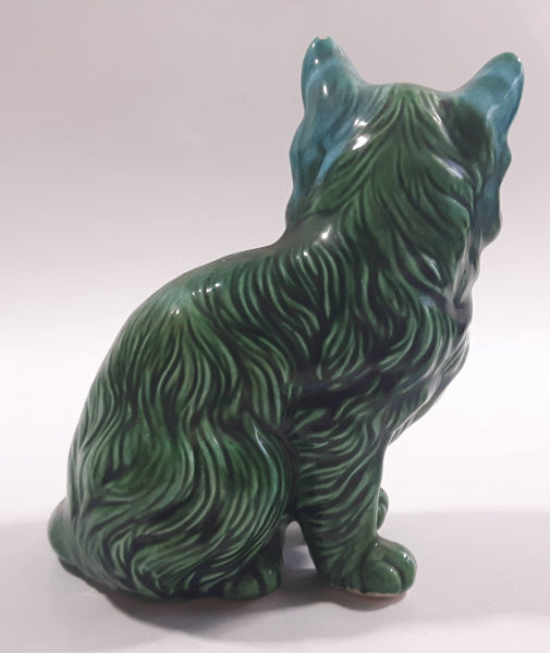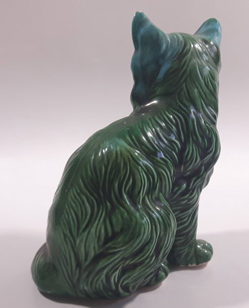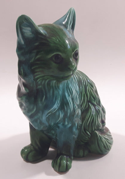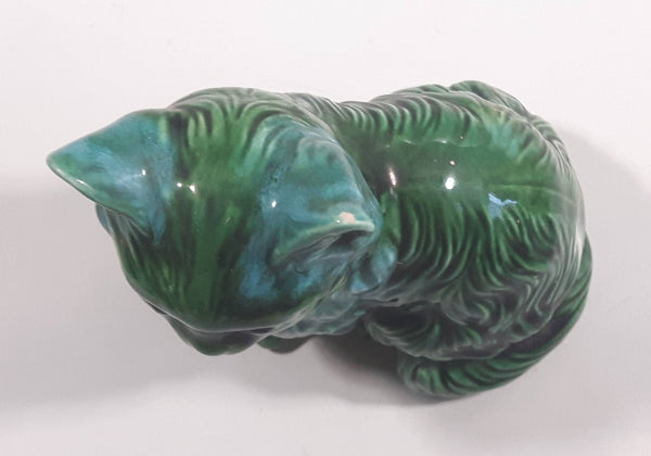 Dark Green Blue Glazed 5 3/8" Tall Ceramic Cat Ornament