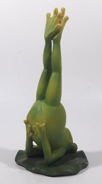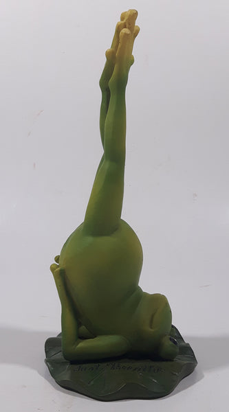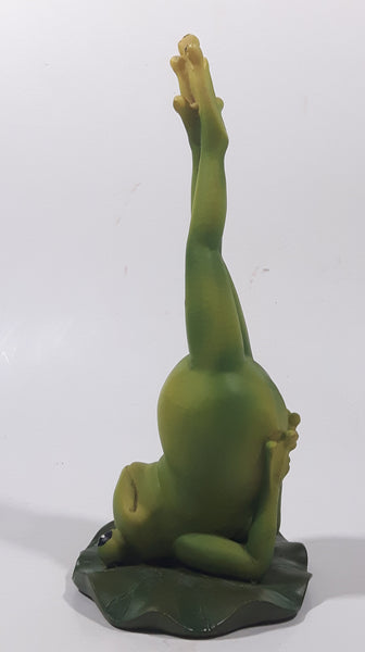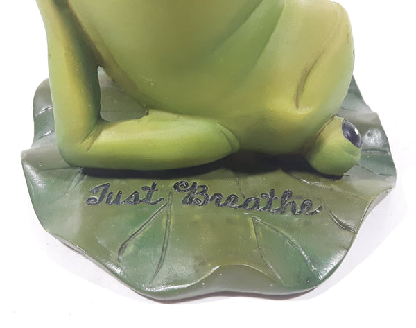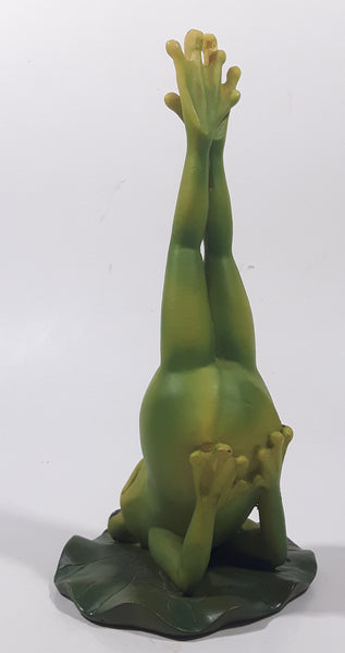 Frog Doing Yoga Pose On A Lilypad with Feet In The Air "Just Breathe" 7" Tall Resin Figurine