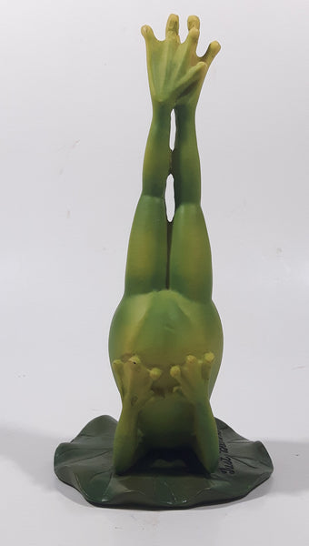 Frog Doing Yoga Pose On A Lilypad with Feet In The Air "Just Breathe" 7" Tall Resin Figurine