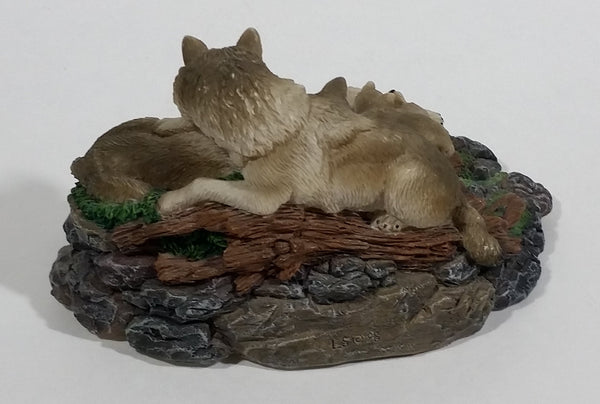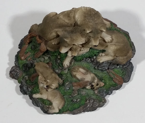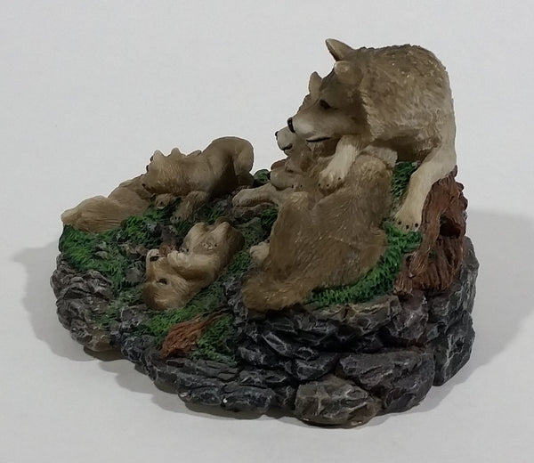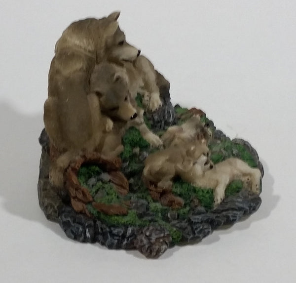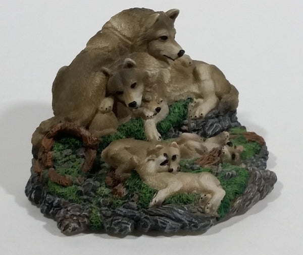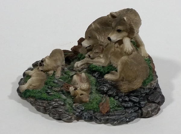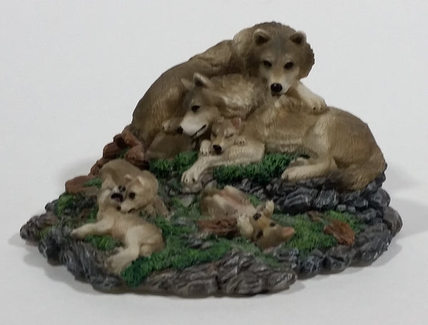 Highly Detailed 1998 LS Living Stone Inc Wolf Wolves Family With Pups Resin Sculpture