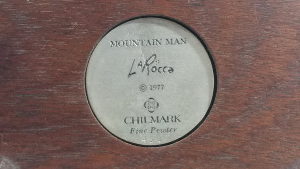 Rare Vintage 1977 LaRocca Mountain Man Pewter 9 1/2" Tall Figure Sculpture on Wood Base
