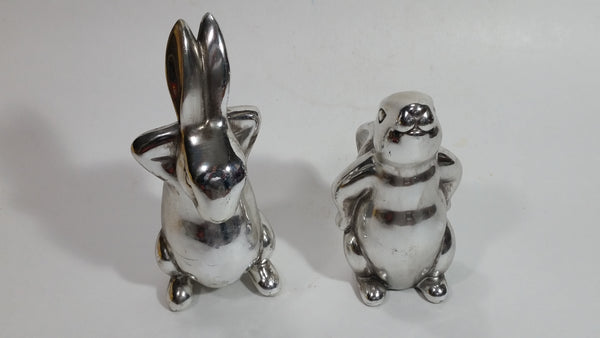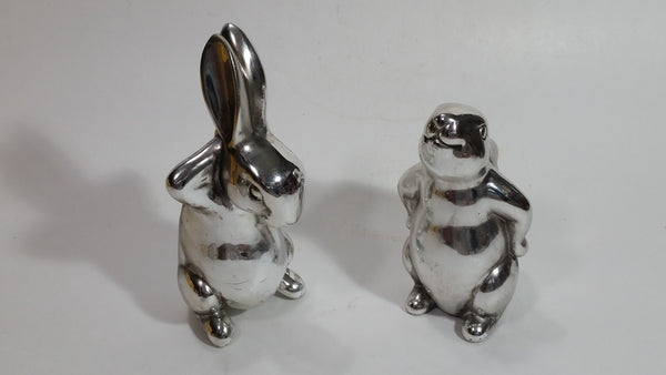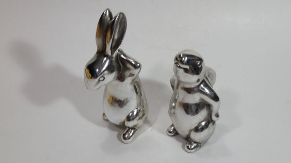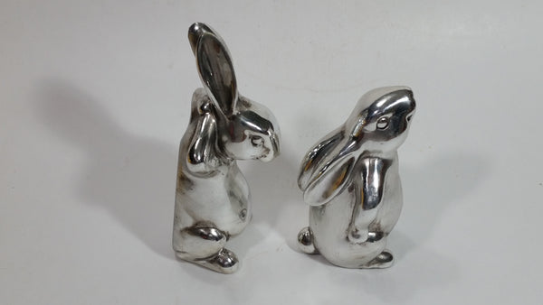 Set of 2 Bunny Rabbit Hare Stainless Steel Figurines